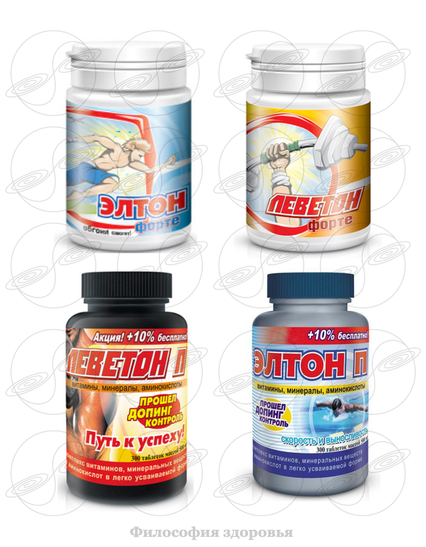 Леветон П – энергия и сила, и Элтон П – скорость и выносливость, разработаны Московским научно‐практическим центром спортивной медицины. Прошли исследования в лаборатории клинической фармакологии и допингового контроля ГосКомСпорта России в 2000–2003 гг. на спортсменах высокой квалификации, мастерах спорта международного класса.