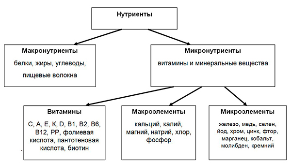 Нутриенты – пищевые вещества, биологически активные компоненты пищи, обуславливающие жизнеобеспечение организма. Различают макро‐ и микронутриенты.