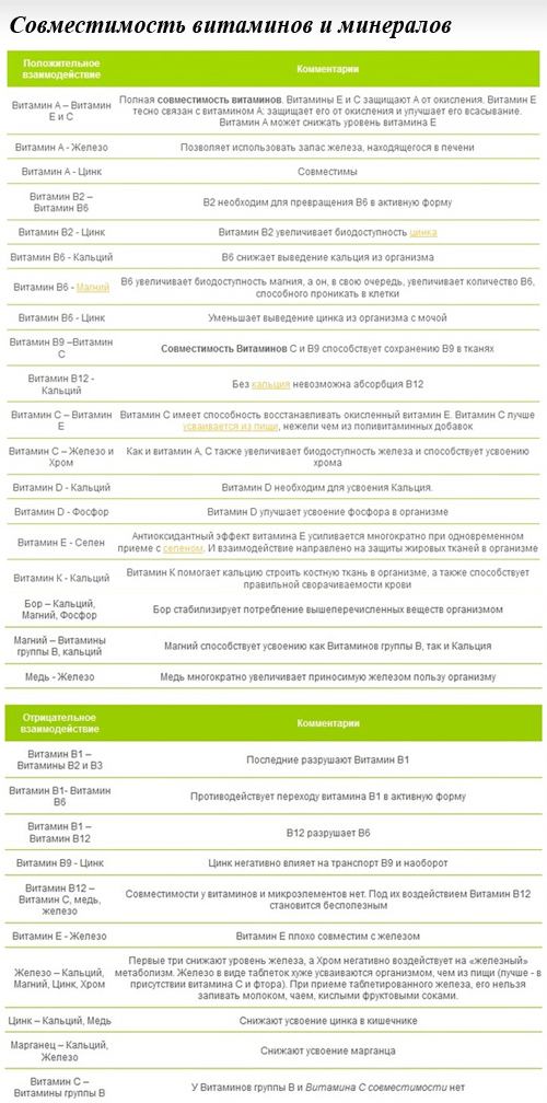 Совместимость микроэлементов с витаминами